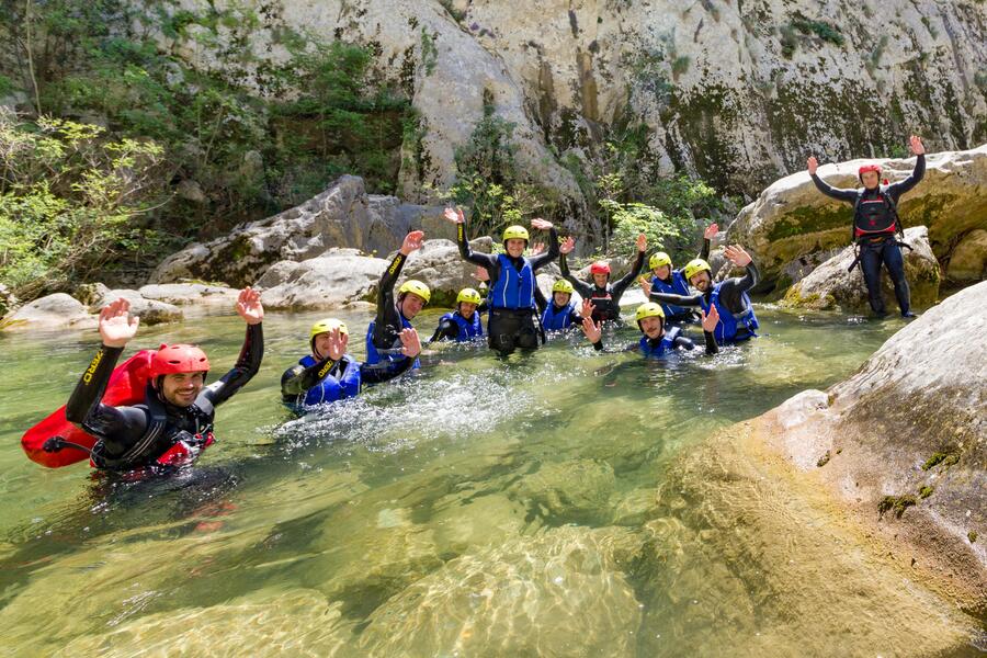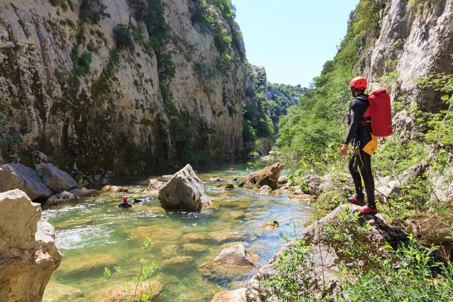 È un esperienza adatta a tutti anche ai bambini dagli otto anni in su. Il canyoning di base è una combinazione di passeggiate, scivolare lungo le rapide, camminare attraverso tunnel e nuotare nelle acque cristalline e sotto la cascata più alta del fiume Cetina.