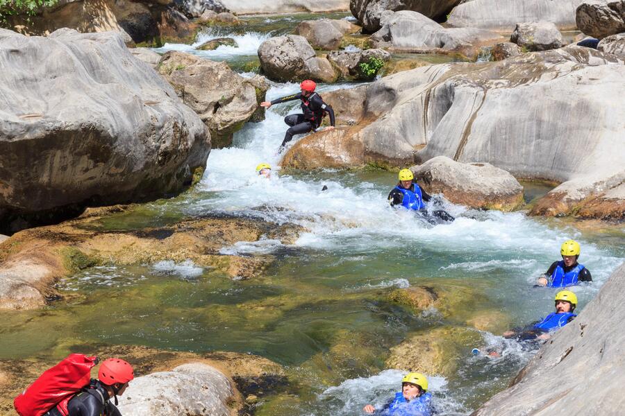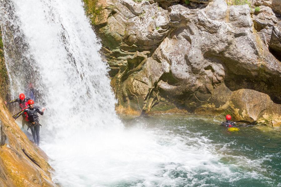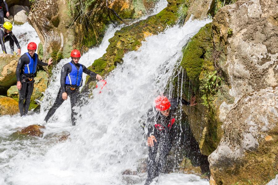 Se stai cercando una esperienza di avventura estrema, questo tour è per te. Il miglior viaggio avventuroso in Croazia. Il canyoning estremo è un pacchetto completo di avventure multiple per tutti gli amanti della natura e non solo. È una combinazione di passeggiate, escursioni, scivolate lungo le rapide, nuotando in piscine di acqua naturale cristallina, camminare attraverso tunnel e calandosi in corda doppia vicino alla cascata piu’ alte del canyon (55 m). Comprende anche alcuni salti dalla scogliera fino a 10 metri di altezza e un’altro discesa in doppia (20 m). Ti forniremo: mute, giubbotti di salvataggio, imbracature e caschi.